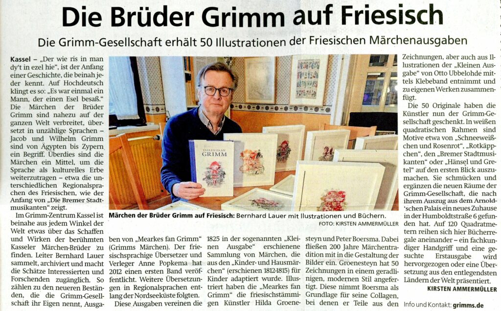 Une nouvelle exposition majeure intitulée « La Magie des Contes de Fées » est actuellement présentée par l’Association des Frères Grimm à la Galerie Municipale de Neuwied (Rhin) du 9 juillet au 29 septembre 2025. Elle présente plus de 250 documents et œuvres d’art exceptionnels du XVIe au XXIe siècle, issus des collections de Cassel. L’accent est mis sur les « Contes d’ enfance et du foyer », inscrits au patrimoine mondial de l’UNESCO à l’été 2005 à la demande de l’Association des Frères Grimm.